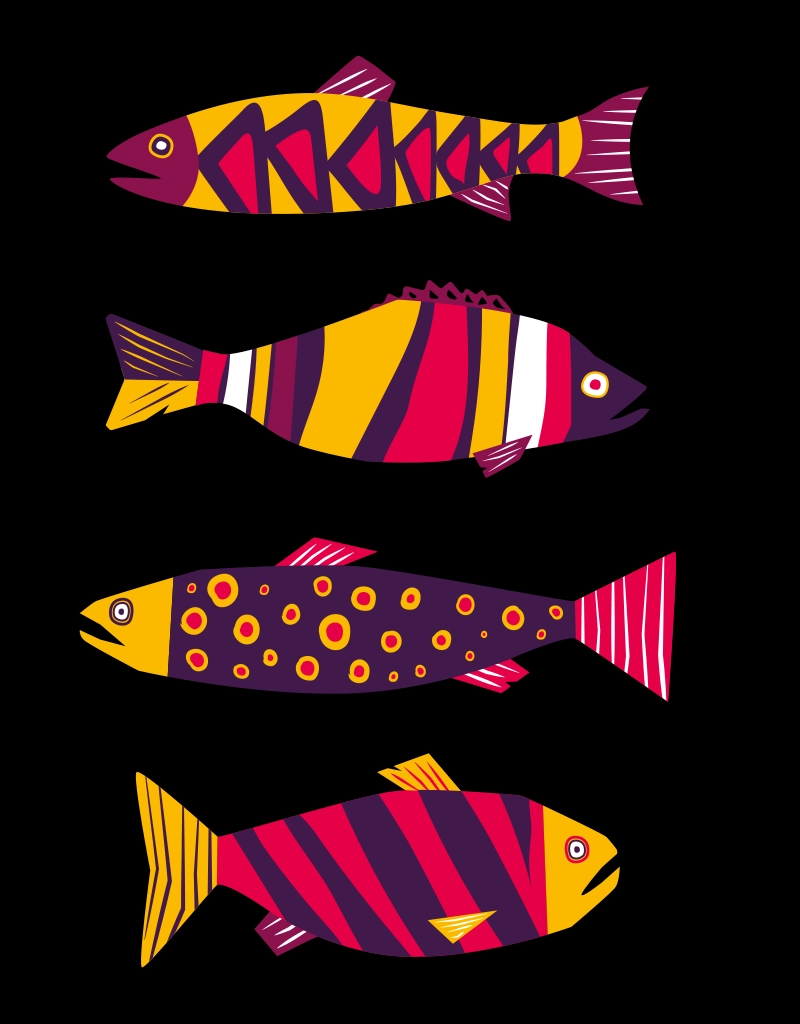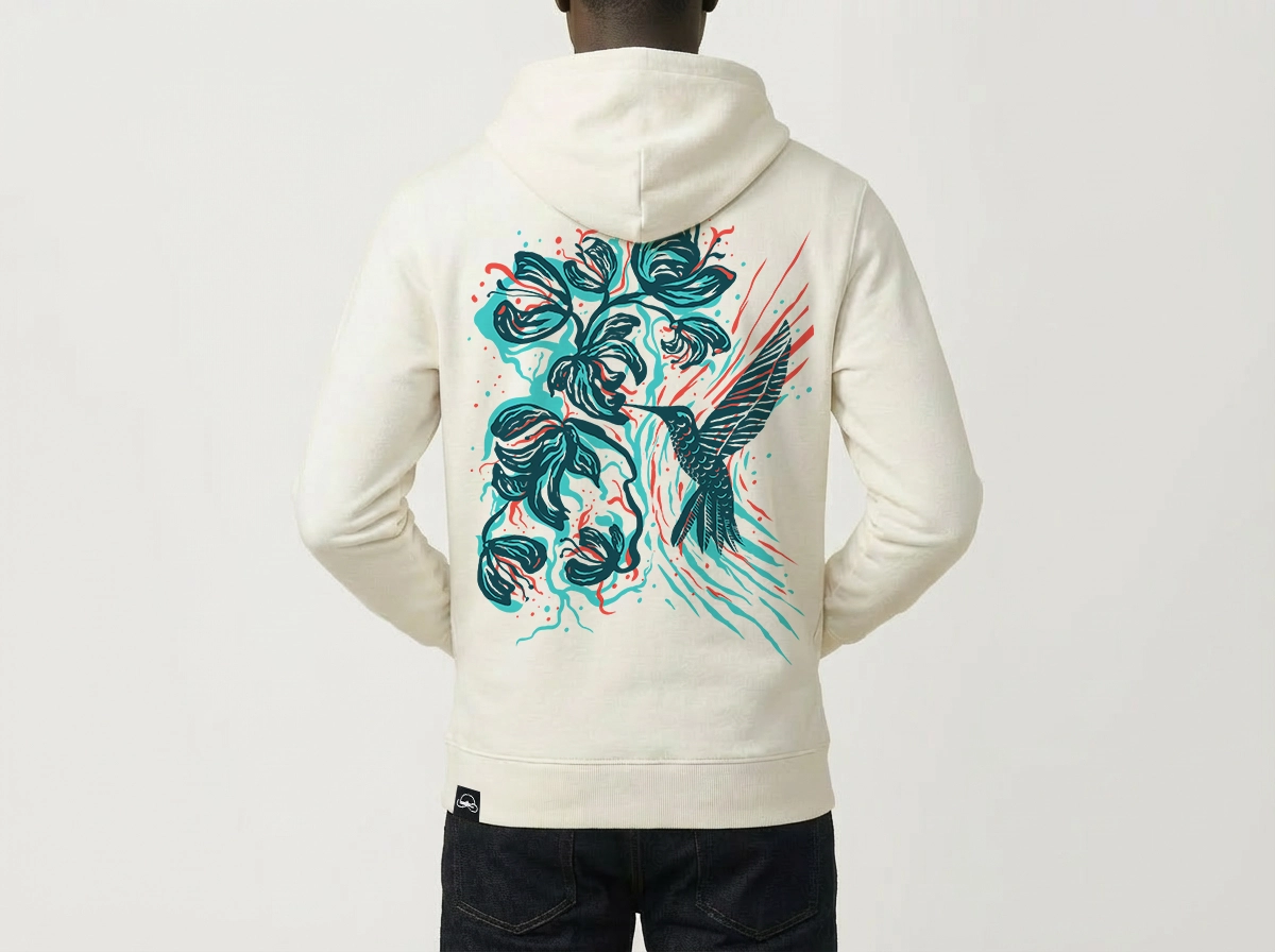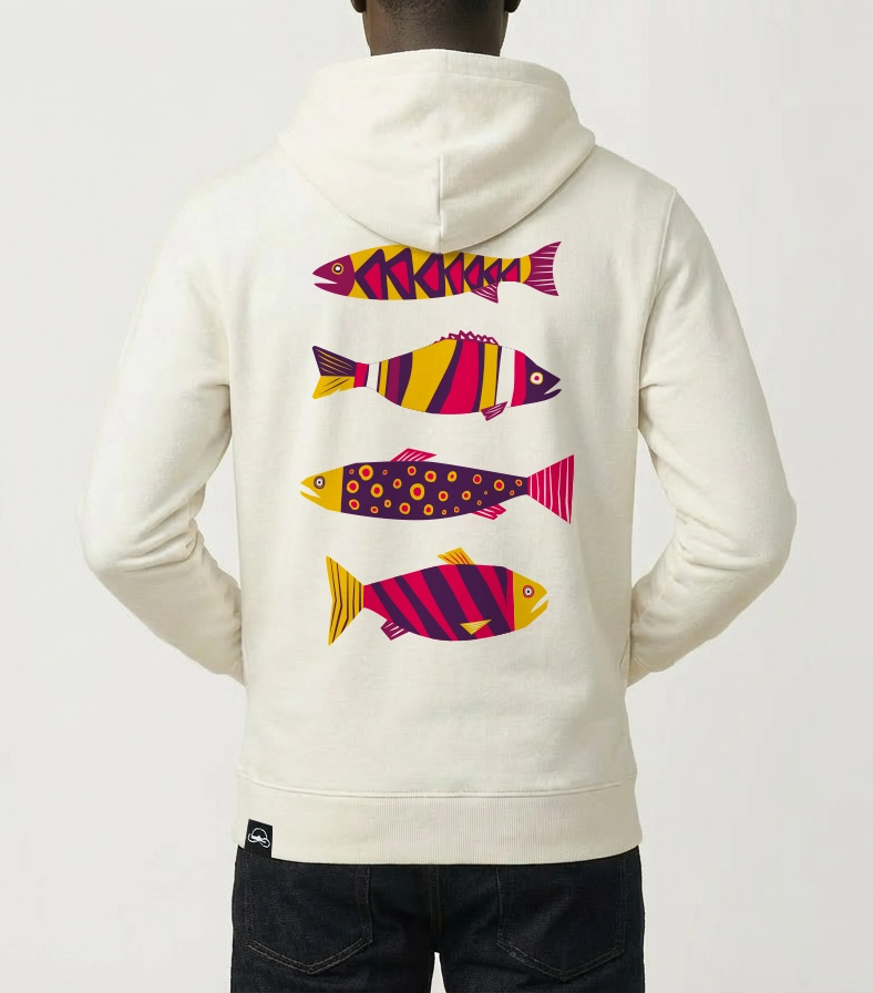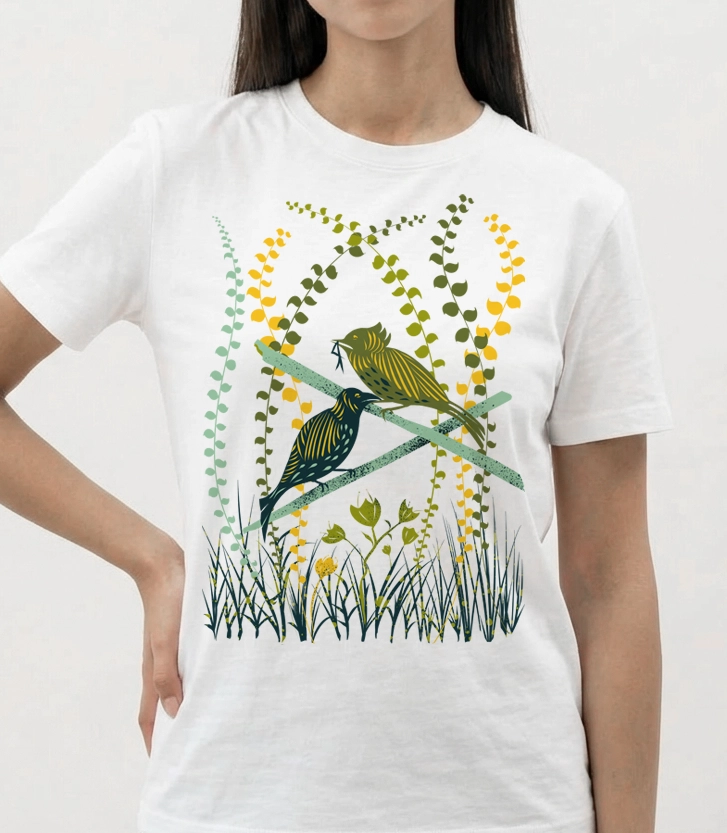 As ilustrações da Riobaldo são artes autorais, criadas a partir do universo e do pensamento da marca. Pássaros, peixes, barcos, dragões e outros símbolos aparecem como imagens abertas, sem uma narrativa fechada, deixando espaço para diferentes leituras e interpretações.